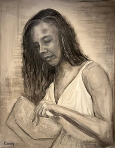 2016Ondergrond met aquarel portret opgezet met waterige acrylverf.
